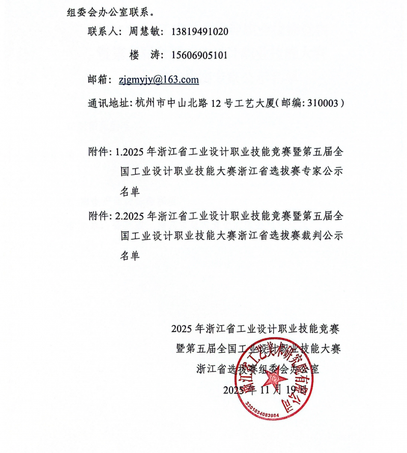 【職業技能大賽】關于公布2025年浙江省工業設計職業技能競賽暨第五屆全國工業設計職業技能大賽浙江選拔賽各賽項舉辦時間、地點的通知